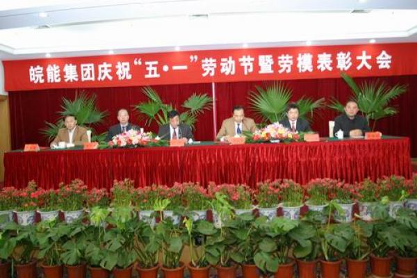 4 月28下午,皖能集团公司在合肥皖能大厦召开了“庆祝五一国际劳动节暨劳动模范表彰大会”。会议由集团公司党委委员、副总经理汤大举主持,党委委员、副总经理王卫生宣读了集团公司表彰决定,集团公司党委书记、总经理方平作重要讲话, 劳模代表 安徽马鞍山万能达发电有限责任公司扩建处办公室副主任、党支部书记杨学奎宣读“皖能集团劳动模范”和“皖能集团先进集体”倡议书。 集团公司党委委员、副总经理吴优福、党委委员、总经济邱先浩、总工程师朱昭明、 各所属及控股发电企业总经理(厂长)、党委书记、工会主席、被评选为“皖能集团劳动模范”和“皖能集团先进集体”的代表,集团公司、皖能股份有限公司总部和非电子公司全体职工(含外派人员),共160多人 参加了会议。