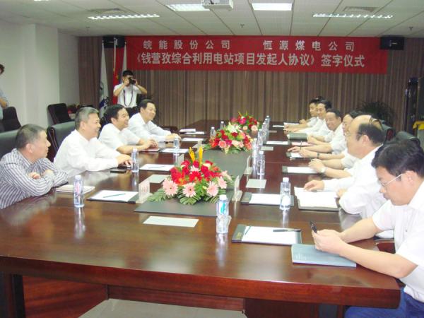 9月17日下午,皖能股份公司与皖北恒源煤电公司共同开发钱营孜综合利用电站项目协议签字仪式在皖北恒源煤电股份有限公司举行。皖能股份公司总经理施大福、副总经理李波、项目管理部主任徐向阳,恒源煤电股份公司董事长龚乃勤、副总经理王显民、财务总监郝宗典等出席了签字仪式,仪式由恒源煤电公司总经理汪永茂主持。