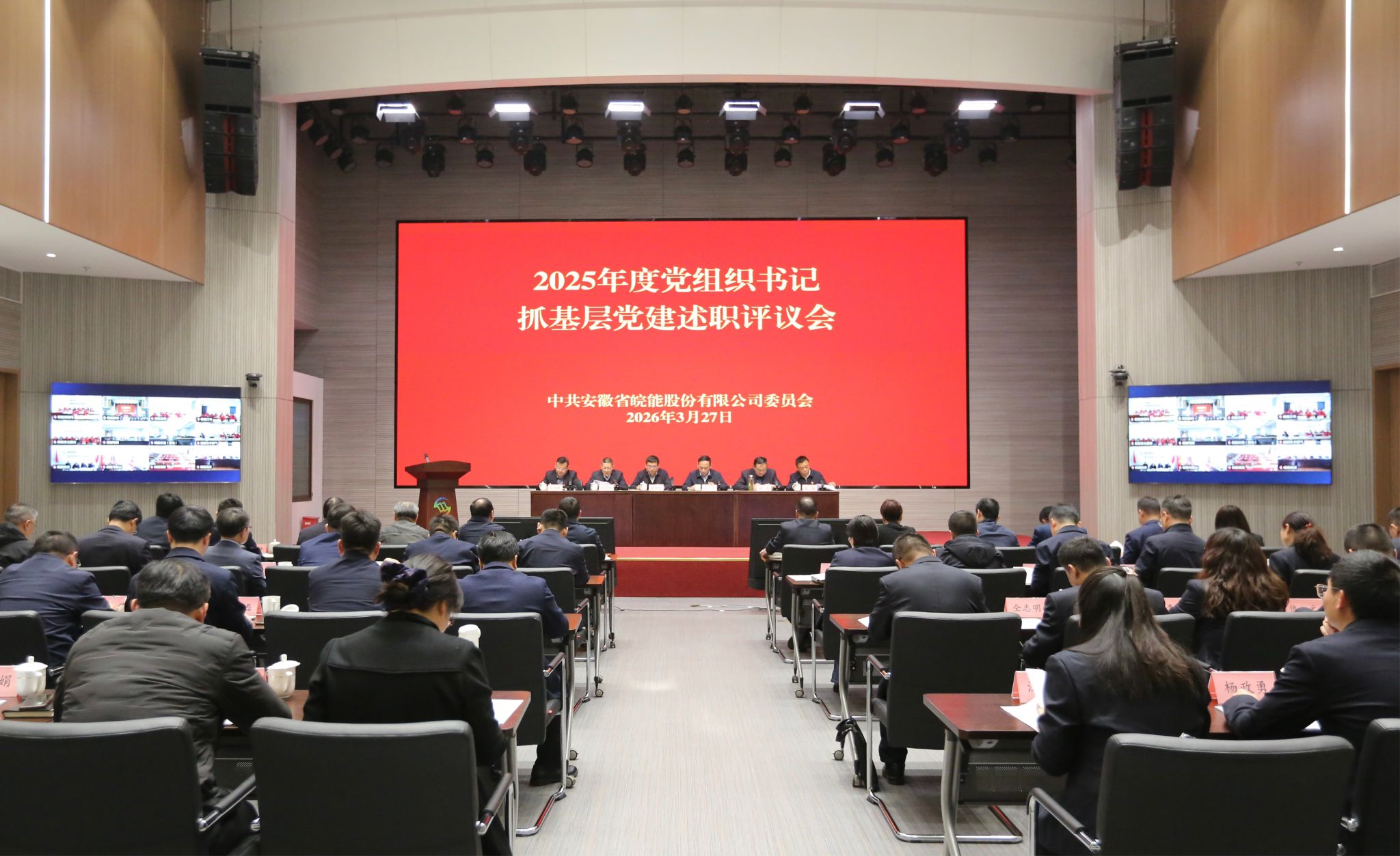 3月27日下午,皖能股份公司组织召开2025年度党组织书记抓基层党建述职评议会暨2026年党建、党风廉政建设和反腐败工作会议。公司党委书记、总经理徐文宫出席会议并讲话,党委副书记、工会主席王亚斌主持会议并作党建工作报告,党委委员、纪委书记欧阳辉作党风廉政建设和反腐败工作报告。集团公司党委组织部副主任石立到会指导。