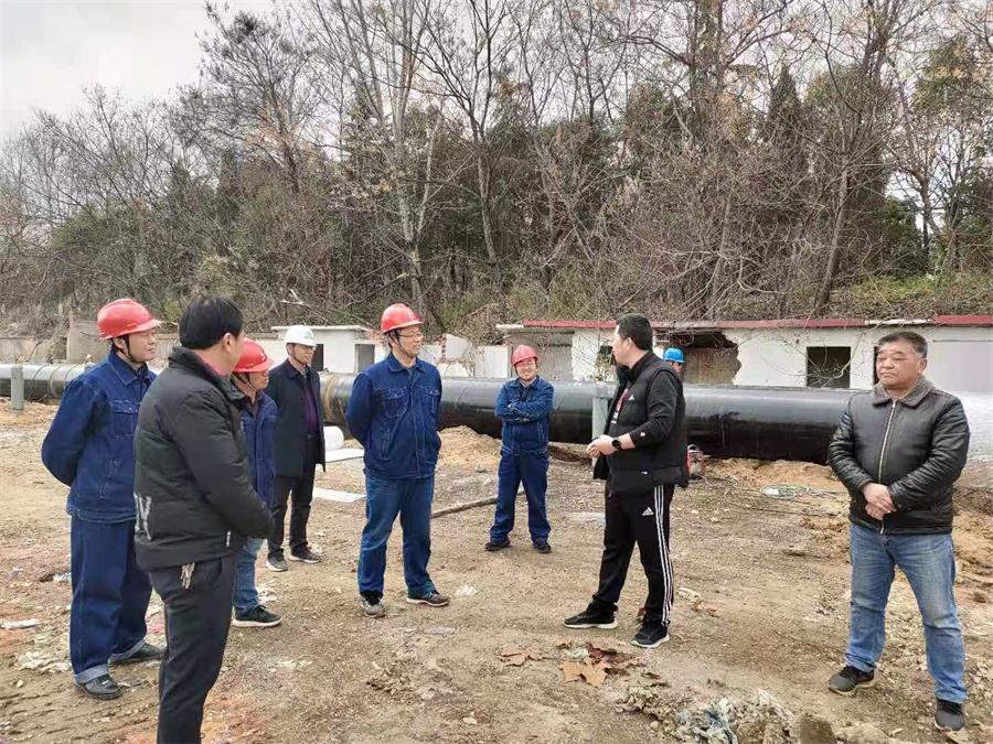3月9日,淮北国安公司党委书记、董事长李建河到相山开发区供热项目施工现场检查指导工作,相关人员陪同检查。