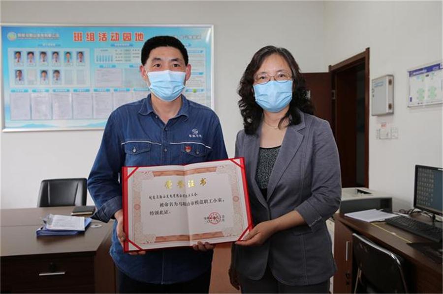 4月27日下午,马鞍山市总工会党组书记、常务副主席毛善群一行来到皖能马鞍山公司走访调研,并现场为马鞍山公司获得市职工小家、五一巾帼标兵岗和优秀工会工作者的集体和个人颁奖。