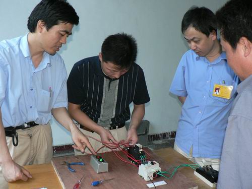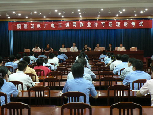 为了加强进网作业电工的管理,规范电工进网作业许可行为,保障电力系统安全稳定运行,股份公司于 2007 年 6 月 9 日 至10日首次在铜陵电厂组织开展电工进网作业许可证考试,铜陵电厂113名高压电工全部参加了考试。股份公司安生部主任俞民、省进网作业电工培训中心副主任王彪等亲临考试现场,监督检查考场秩序。