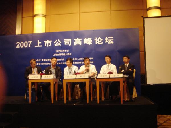 由中国证监会主办的“首届上市公司高峰论坛”于 2007年6月21日在上海召开。中国证监会主席尚福林、上海市市长韩正、中国证监会前主席刘鸿儒、中国证监会副主席范福春等相关领导出席了本次论坛,相关部委、沪深交易所、上市公司、中介机构以及专家学者的代表约200余人参加了本次论坛。万科、华能国际、中国人寿、招商银行、中信证券、中兴通讯、皖能电力等公司作为嘉宾应邀出席了本次论坛。公司方平董事长作为我省唯一一位嘉宾成员应邀出席了本次论坛,并就上市公司如何建立高管人员激励与约束机制进行了座谈,公司董秘周庆霞陪同参加。