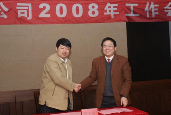 会上,吴总代表股份公司分别与八家控股发电企业主要负责人签订了2008年《内部管理目标责任书》。