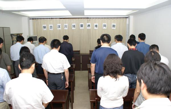 根据国务院决定,为表达对四川汶川大地震遇难同胞深切悼念,5月19日下午二点二十八分,皖能股份公司集中全体员工在公司六楼会议室向四川汶川大地震遇难同胞默哀3分钟。