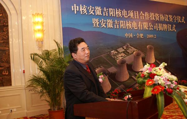 签字仪式上,白总代表皖能集团发表了热情洋溢的讲话。他指出,开发建设吉阳核电项目是省委、省政府以科学发展观为统领,加快建设能源大省步伐,促进我省经济又好又快发展的重要举措,也是皖能集团按照“三个转移 两个加大 一个延伸”的总体思路,解放思想,科学发展,以实现未来三年皖能集团资产规模和销售收入翻一番的关键一步。在省、市政府和各级领导的大力支持和关怀下,项目前期工作目前初步取得了可喜的进展。