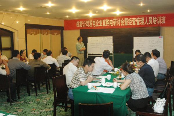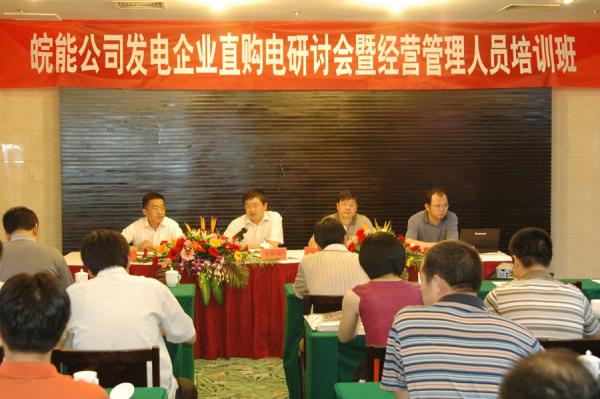 为积极应对即将开始的直购电试点,分析形势、研究对策,全面提升皖能发电企业经营管理人员能力,加强经营团队建设。股份公司于8月28日至31日组织召开了皖能公司发电企业直供电研讨会暨经营管理人员培训班。各发电公司分管经营副总经理、计划经营(商务)部主任、经济分析专职参加了会议,电燃公司和部分参股发电公司也应邀参加。集团公司副总经理、股份公司总经理吴优福做开班讲话并亲自参加了研讨。