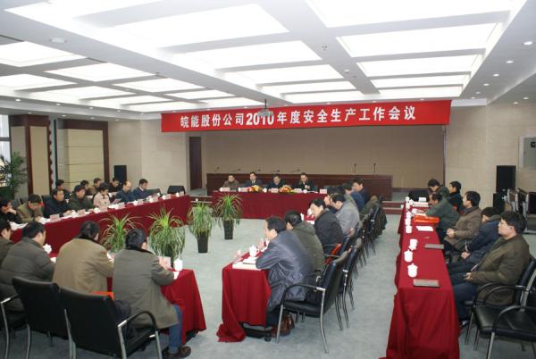 皖能股份公司2010年安全生产工作会议于1月12日在合肥能源大厦召开。各发电企业安全第一责任人、分管生产、检修、实业副总经理、各企业安生部门负责人、公司机关各部门主任及电燃公司负责人等参加会议,会议由安全生产部主任俞民同志主持。集团公司副总经理吴优福同志到会作了重要讲话,股份公司总经理施大福同志作了题为《落实责任 标本兼治 为确保公司安全持续稳定而努力》的工作报告。