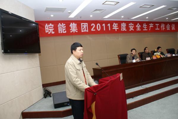 皖能集团公司2011年安全生产工作会议1月11日在合肥召开。公司安委会成员,各子公司负责人、安监部门负责人参加会议,会议由电管公司副总经理李传国主持。电管公司总经理、集团公司安委会副主任施大福作了题为《落实责任 强化预控 为实现集团公司安全持续稳定而努力》的工作报告,集团公司总经理汤大举作了重要讲话。