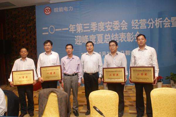10月21日,皖能股份公司在马鞍山市召开2011年第三季度安委会、经营分析会暨迎峰度夏总结表彰会。集团公司党委副书记、纪委书记张海平,股份公司领导、各部门主任,各发电企业、电力燃料公司、电力运营检修公司、环保公司的有关负责同志等参加会议。