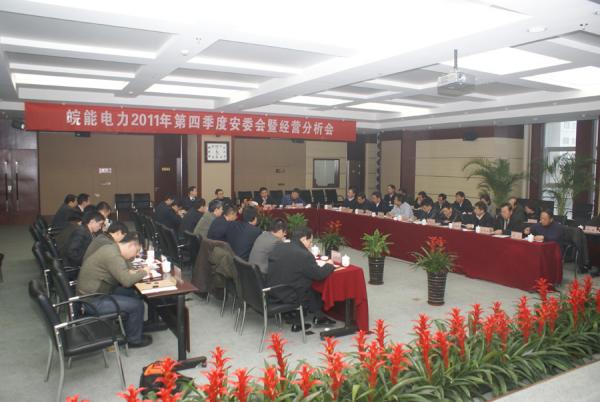 会议由皖能股份公司副总经理方世清主持;皖能股份公司总工程师、安全生产部主任倪鹏通报了2011年第四季度及全年的安全生产工作情况,提出了新一年的安全生产工作安排;计划经营部副主任陶国军发布了2011年第四季度及全年的经营工作信息,分析了2012年经营工作重点。皖能铜陵公司副总经理(主持行政工作)刘长生、淮北国安公司总经理王国庆先后交流发言。皖能股份公司副总经理李波宣布了发电企业2011年安全考核结果。