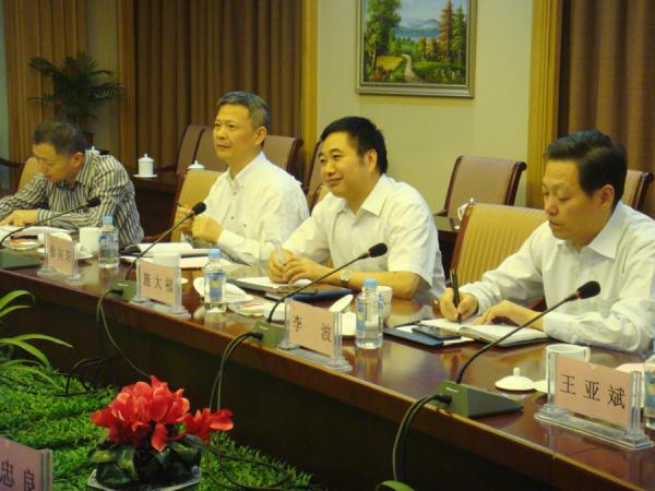 9月17日下午,皖能股份公司总经理施大福、副总经理李波、项目管理部主任徐向阳等一行赴淮北矿业集团会商项目合作事宜。淮北矿业(集团)公司副董事长、总经理张国建、副总经理孙方、副总工程师周卫金,临涣中利发电公司董事长陈亚东、总经理李忠良等有关人员参加会谈。