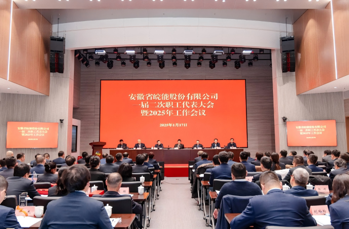 1月17日,皖能股份公司一届二次职工代表大会暨2025年工作会议在皖能智控中心召开,公司党委书记、总经理方世清作题为《全力以赴夯基础 奋发有为做贡献 为创建一流电力产业平台而持续奋斗》的工作报告,党委副书记、工会主席王亚斌主持会议,110名职工代表,公司领导班子、中层管理人员,控管企业主要负责人和相关分管负责人、中层人员,以及首届皖能电力“十大杰出人物”、2024年度“三好人才”和管培生代表参加会议。