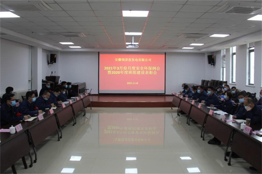 近日,钱营孜发电公司召开2021年3月份安全环保例会暨2020年度班组建设表彰会。该公司领导班子、各部门负责人及外委项目部相关负责人参加会议。会议由该公司总经理夏力伟主持。