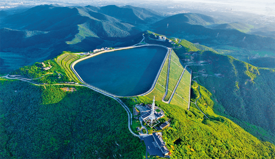 抽水蓄能是目前技术最成熟、经济性最优、最具大规模开发条件的储能方式,也是清洁低碳的灵活调节电源。我国抽水蓄能电站装机容量位居世界首位。截至2021年底,国家电网经营区抽水蓄能电站在运、在建规模分别达到2631万千瓦、4643万千瓦。图为江苏宜兴抽水蓄能电站上水库。 国家电网有限公司党组宣传部供图